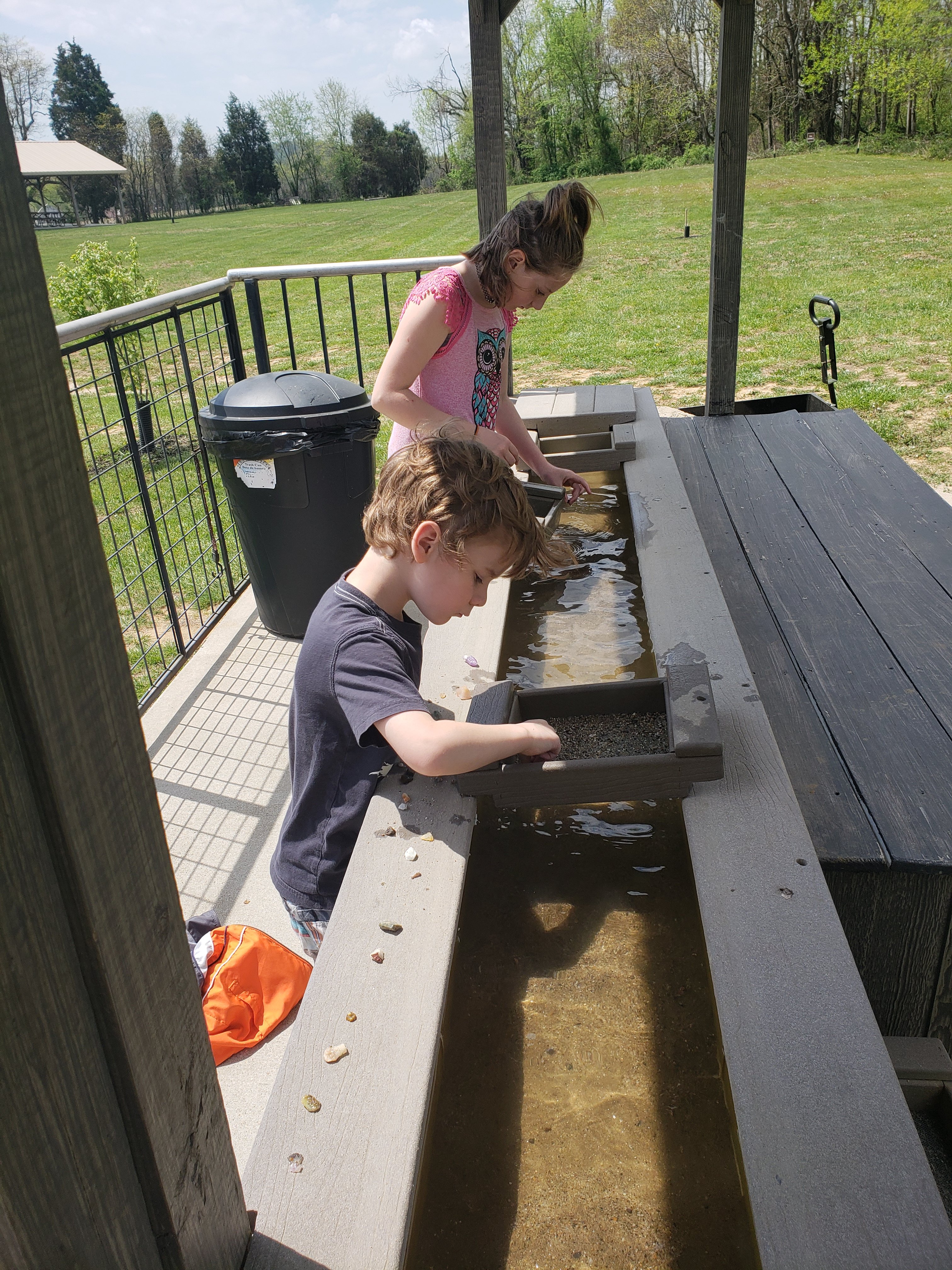 While we were on site at Indiana Caverns, my oldest two kiddos were able to try their hand at gemstone mining!